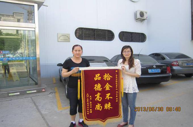 2013年5月29日下午15:30時,魯ET2129出租車駕駛員馮文奎在車內(nèi)發(fā)現(xiàn)乘客遺失的一個文件袋,馮文奎及時將文件袋上交運營中心。文件袋內(nèi)有單位組織機構(gòu)代碼和營業(yè)執(zhí)照原件等證件,經(jīng)運營中心查找聯(lián)系上了該失主,原來該乘客下車時把文件袋丟在車內(nèi),因下車沒要車票,難以查找該出租車,當(dāng)?shù)弥鲎廛囻{駛員已上交運營中心,該失主非常感激駕駛員,并送來錦旗表示感謝。