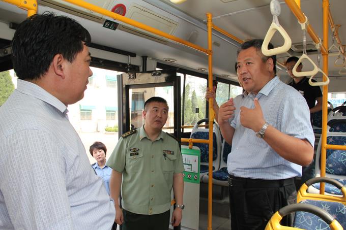 7月11日上午,副市長李俊峰一行在市交通運輸局局長燕乃敏的陪同下到市公交公司調研安全生產工作。