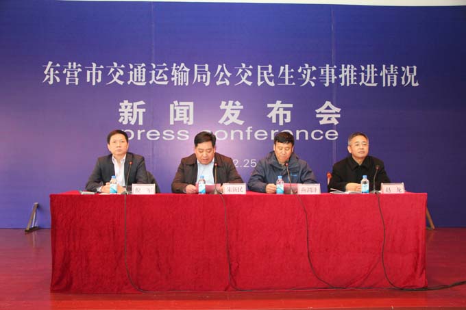 12月25日上午9點(diǎn)30分,東營市交通運(yùn)輸局公交民生實(shí)事新聞發(fā)布會在市公交公司舉行,主要是通報2016年度公交各項(xiàng)民生實(shí)事工作的推進(jìn)情況。東營市交通運(yùn)輸局黨委委員、副局長燕渭澤、東營市公交公司副經(jīng)理趙龍、北京中航訊股份科技有限公司總經(jīng)理倪軍以及來自東營電視臺、東營日報社、大眾網(wǎng)、齊魯晚報、黃河口晚刊等9家新聞媒體記者出席了新聞發(fā)布會。會議由東營市公交公司黨委書記、經(jīng)理朱新民主持。