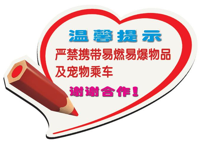 為了深入貫徹落實(shí)“兩保兩樹”活動(dòng)精神,切實(shí)做到保乘客安全,樹公交形象,近日,市公交公司廣告部陸續(xù)在公交車身廣告畫面的車前門上車處添加了溫馨提示語,提醒廣大乘客不要攜帶易燃易爆等危險(xiǎn)品及寵物乘坐公交車。提示語以白色心形為底色,加以紅色文字,既美觀醒目,規(guī)范統(tǒng)一,又很好地喚起了乘客的公共安全意識(shí),確保了市民的出行安全。