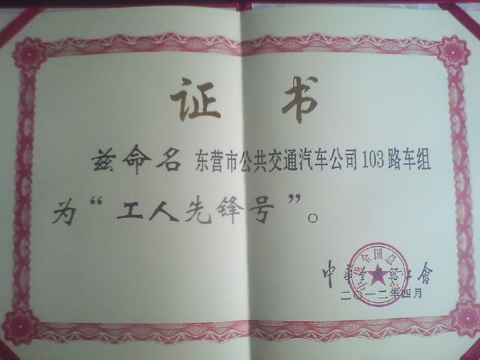 4月26日,在“五一”國(guó)際勞動(dòng)節(jié)即將來臨之際,全省“五一”慶祝表彰大會(huì)在濟(jì)南隆重召開,市公交公司汽車一隊(duì)103路車組被中華全國(guó)總工會(huì)授予“全國(guó)工人先鋒號(hào)”榮譽(yù)稱號(hào)。