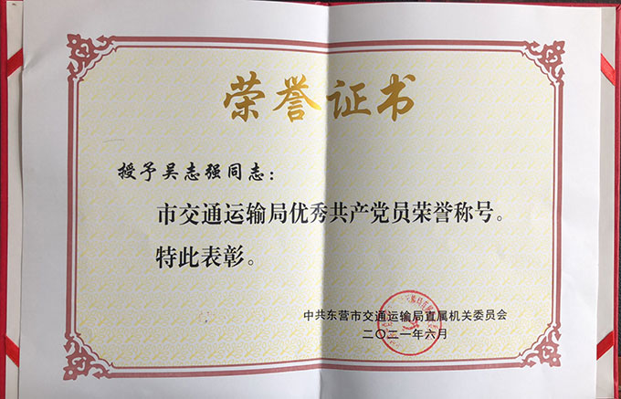 吳志強榮獲”市交通運輸局優(yōu)秀共產(chǎn)黨員“榮譽稱號