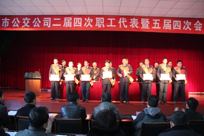 大會由市公交公司副經(jīng)理李學忠同志主持,趙龍副經(jīng)理宣讀了2013年公司先進集體、先進個人及優(yōu)秀黨組織的表彰決定,并進行了頒獎儀式。會議審議通過了公司經(jīng)理朱新民同志做的《2013年公司工作報告》、工會主席崔磊做的《2013年公司工會工作報告》,會議還審議通過了《公司2013年財務(wù)工作報告》、《公司行車安全制度修改草案》和《公司稽查管理規(guī)定修改草案》等事項。