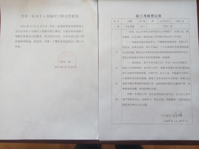 市公交公司人保管理科啟動固定期限合同工轉(zhuǎn)正考核工作