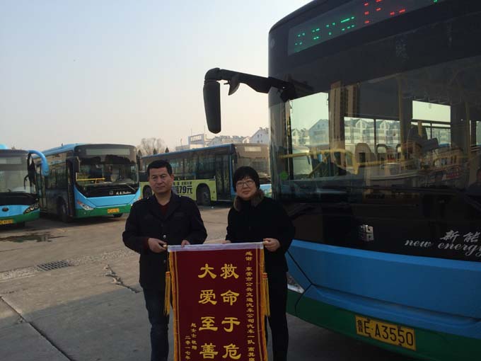 3月11日上午,市民趙女士拿著一面寫有“救命于危、大愛至善”的錦旗來到市公交公司汽車一隊,感謝152路駕駛員高其庭師傅見義勇為的高尚品德。據(jù)車隊了解得知,3月2日15時10分,高其庭駕駛魯E81532號車執(zhí)行從公交公司至火車站的152路任務(wù),當車行駛至科英電子公司時,突然聽到有乘客說有人暈倒了,高其庭立即停車查看,發(fā)現(xiàn)一位阿姨臉色發(fā)黃、口吐白沫,情況十分危急。他立即拔打了120與急救中心聯(lián)系,同時將情況告知車隊。在征得車上乘客同意的情況下駕車趕往人民醫(yī)院,途中由其老伴和一名穿紅色上衣的好心乘客照顧。到達市人民醫(yī)院急救中心后,高其庭與病人老伴協(xié)同醫(yī)護人員將其送下救治。該乘客就是趙女士的母親。