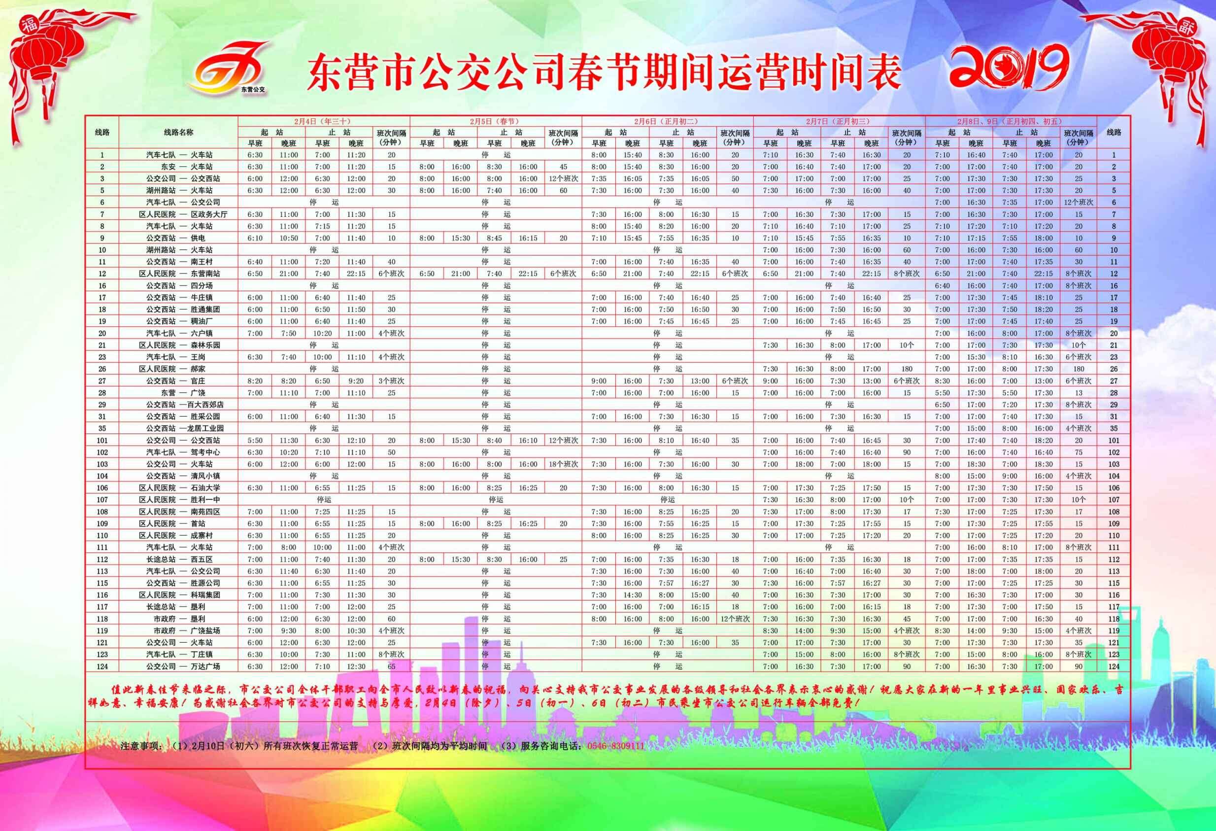 2019年東營市公交公司春節(jié)期間運營時刻表2