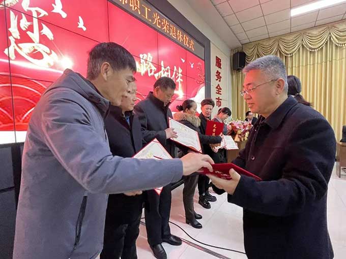 2月14日上午,市公交公司在辦公樓一樓會議室舉辦干部職工光榮退休儀式。30名退休老同志齊聚一堂,共敘公交情懷。公司黨委班子成員、老同志退休前所在單位主要負(fù)責(zé)同志參加儀式。