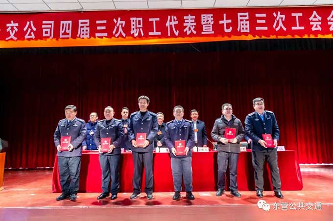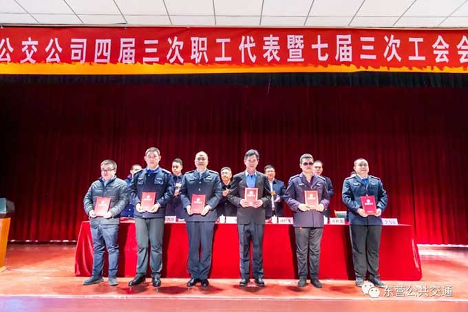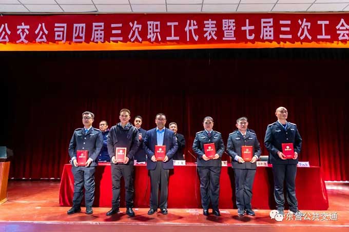 大會表彰了2022年度評先樹優(yōu)先進典型。公司黨委班子向2022年度先進基層黨組織、優(yōu)秀黨務工作者、優(yōu)秀共產黨員、先進集體、先進個人、優(yōu)秀干部頒發(fā)了榮譽證書和獎牌。審議并表決通過了趙龍同志作的《凝心聚力擔使命,奮楫揚帆啟新程,為打造交通強國山東示范區(qū)“東營樣板”貢獻公交力量》工作報告以及2023年工會、財務工作報告和部分管理制度。