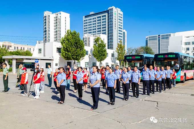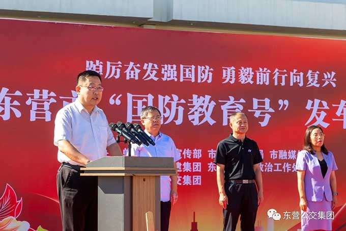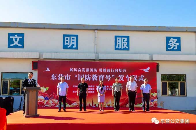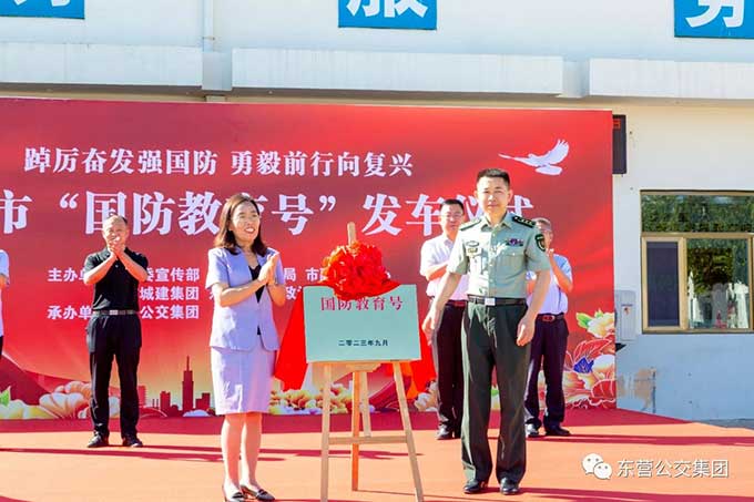 2023年9月14日上午,東營市國防教育號發(fā)車儀式在市公交集團隆重舉行。市委宣傳部副部長邱家梅出席儀式并宣布發(fā)車,市交通運輸局黨組成員、副局長戴景鵬致辭,東營軍分區(qū)政治工作處主任王志輝、市融媒體中心副主任趙國防、市城建集團黨委副書記張文生、市公交集團黨委書記趙龍等參加發(fā)車儀式。