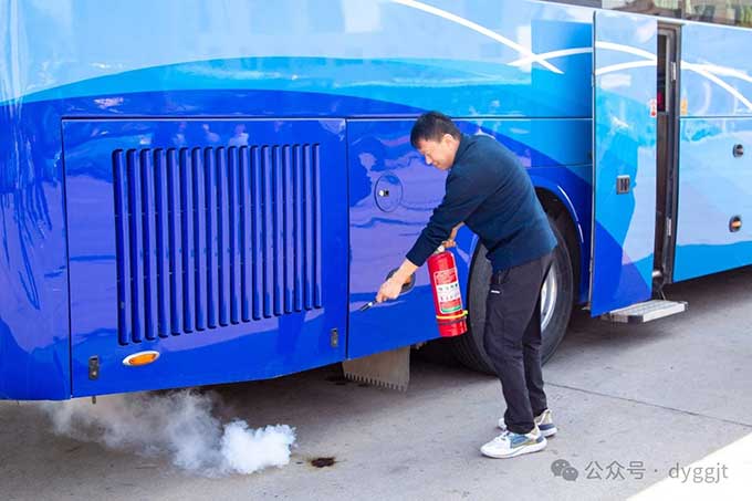 演練重點圍繞公交車、旅游客車發(fā)生火災(zāi)應(yīng)急處置、消防器材使用、滅火演練三方面進行。演練設(shè)置了滅火器、應(yīng)急錘、門、窗等應(yīng)急設(shè)施的使用操作、發(fā)生火災(zāi)時人員疏散、應(yīng)急逃生、報告等流程環(huán)節(jié),突出了演練的實戰(zhàn)性和實效性。