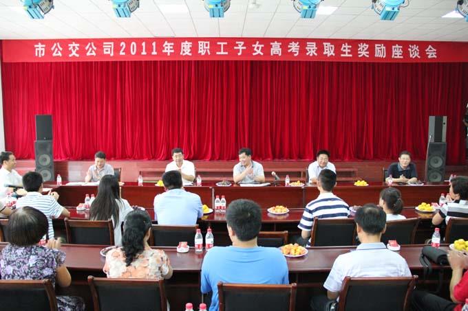 8月27日上午,市公交公司舉行了2011年度職工子女高考錄取生獎勵座談會,為今年高考錄取的職工子女進行獎勵。公司經(jīng)理朱新民出席,受獎勵的職工及子女參加。
