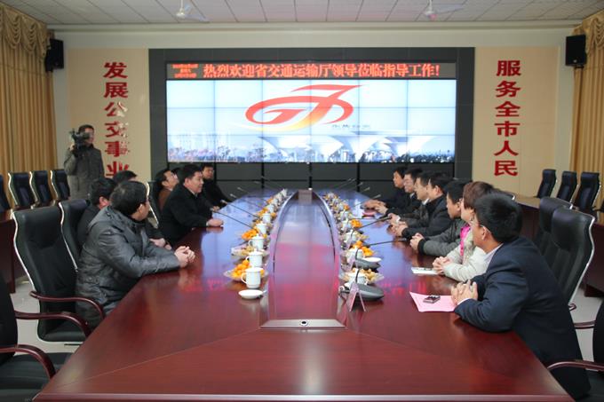 2月18日上午,省交通運(yùn)輸廳人事處副處長(zhǎng)韓明一行,在市交通運(yùn)輸局黨委副書記鄭月成、工會(huì)主席王愛軍等領(lǐng)導(dǎo)的陪同下,到市公交公司智能調(diào)度指揮中心進(jìn)行了專項(xiàng)考核指導(dǎo)。