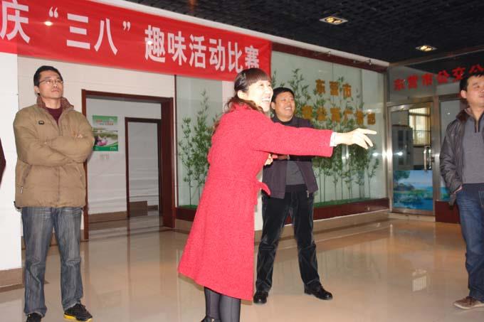 為慶祝“三八”國際勞動婦女節(jié),豐富和活躍職工文化生活,3月5日下午,市公交公司廣告部舉行了慶“三八”趣味活動比賽。比賽設(shè)有搶凳子、夾玻璃球、吹氣球、投擲飛鏢四個項目。整個活動現(xiàn)場氣氛熱烈,快樂而有趣,所有人員興致勃勃參與到各個趣味游戲當中。大家各施其技,力爭取勝,過關(guān)的喜悅,獲勝的歡樂一次次把比賽推向高潮。