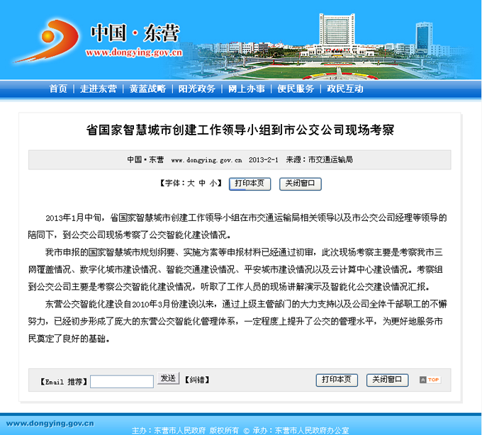 2013年2月1日東營市政府網(wǎng)站報道