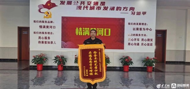 近日,失主楊佳琛帶著一面寫(xiě)有“拾金不昧完璧歸趙,品德高尚學(xué)習(xí)榜樣”的錦旗來(lái)到東營(yíng)公交公司汽車(chē)一隊(duì),感謝車(chē)隊(duì)121路駕駛員劉永波的拾金不昧。