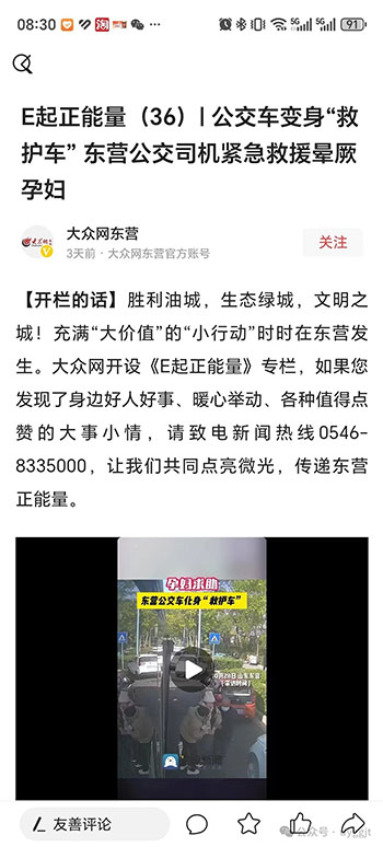 市公交集團(tuán)汽車五隊(duì)駕駛員金繼兵救助孕婦事跡被媒體廣泛報(bào)道,引發(fā)數(shù)十萬網(wǎng)友瀏覽,并紛紛留言點(diǎn)贊。
